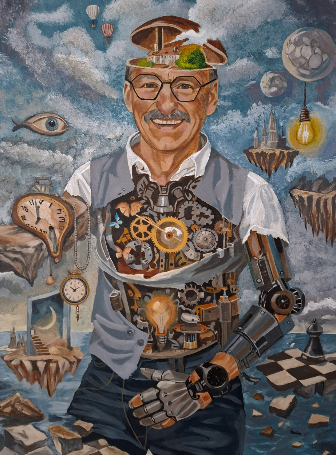 Een zelfportret kun je vrijer schilderen dan het portret van iemand anders. Gelijkenis hoeft niet voorop te staan. Het model bepaalt hoe goed het schilderij is geslaagd. En in het geval van een zelfportret ben je dat dus zelf. Vandaar dat ik cursisten aanraad een zelfportret te maken. Realistisch, vrij of los, of misschien geïnspireerd op een andere schilder. In de loop der jaren hebben veel cursisten er één of meer geschilderd. Op deze pagina staan er meer dan 100 afgebeeld!
